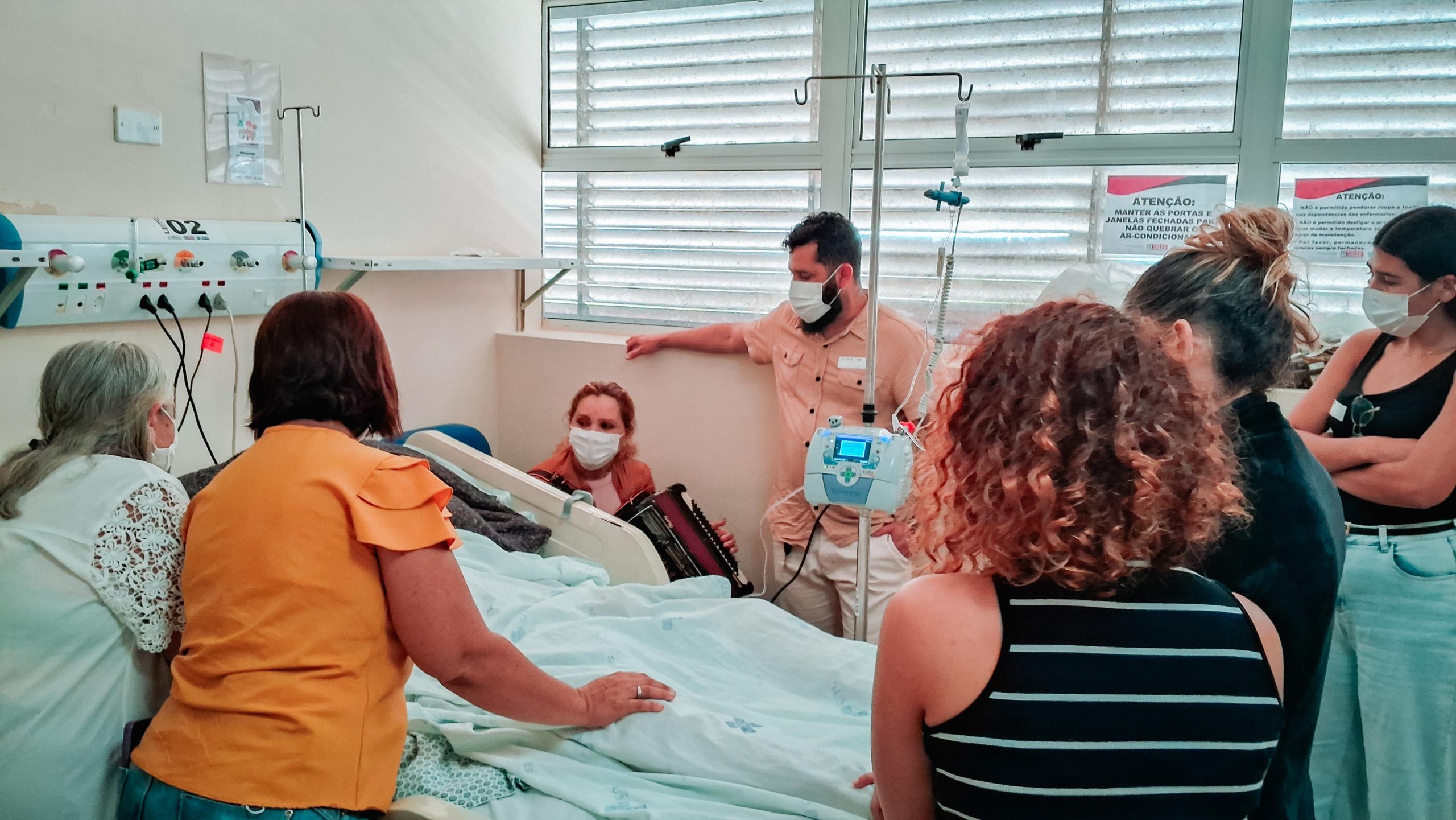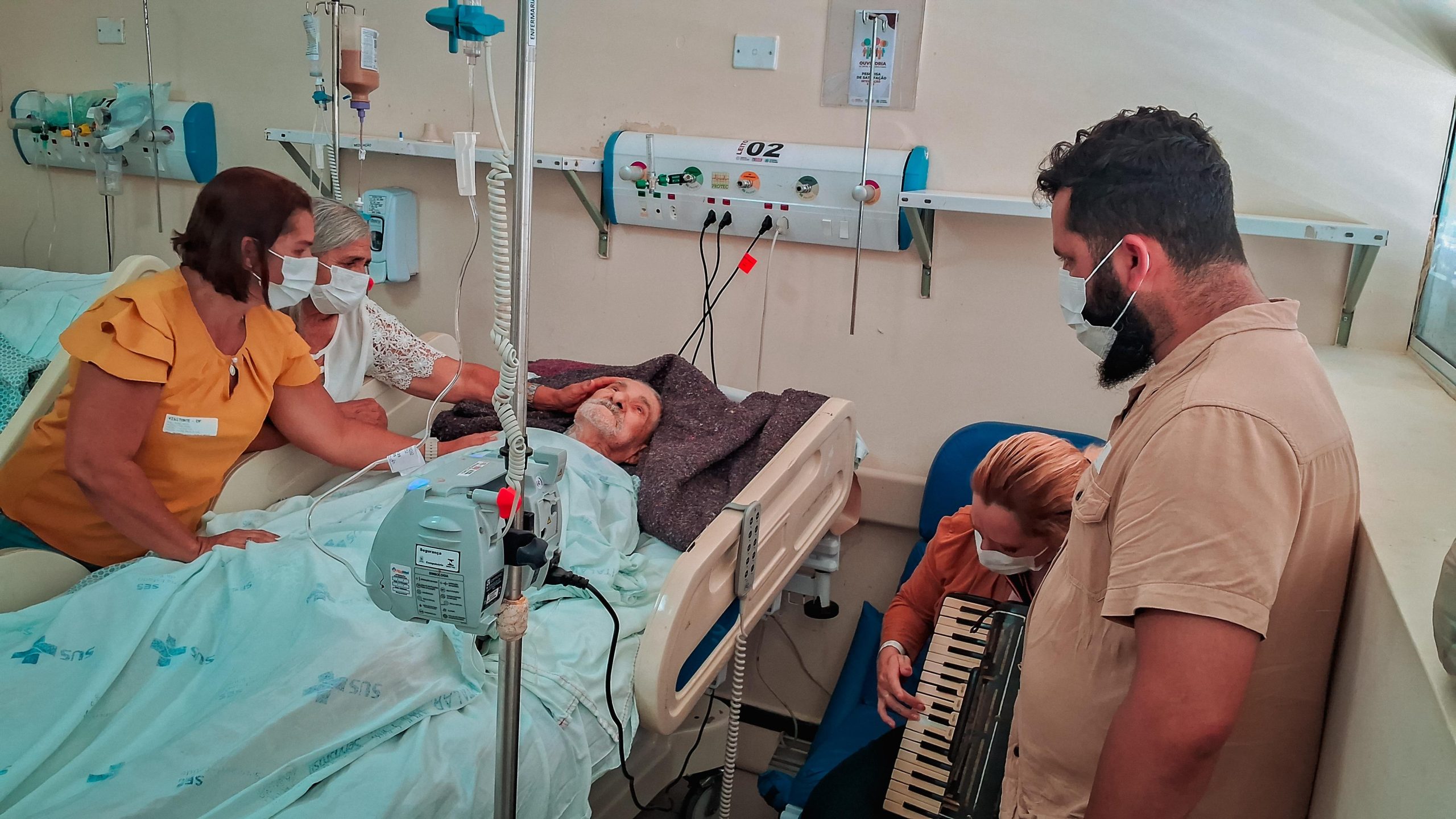 Acordes de emoção: Filha toca sanfona para o pai internado em cuidados paliativos no Hospital Metropolitano