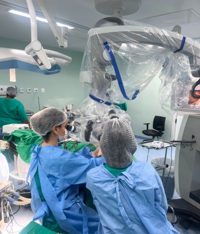 “O tratamento para este tipo de doença é a mastoidectomia, uma cirurgia delicada, feita na base lateral do crânio, e que requer equipamentos de última geração, como microscópios específicos”, explicou Camila.