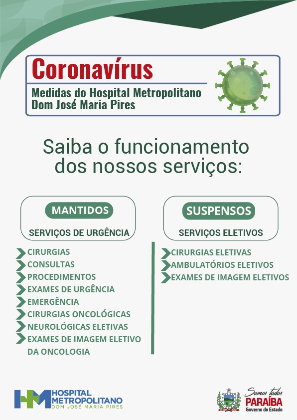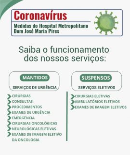 Coronavírus: Medidas Hospital Metropolitano Dom José Maria Pires
