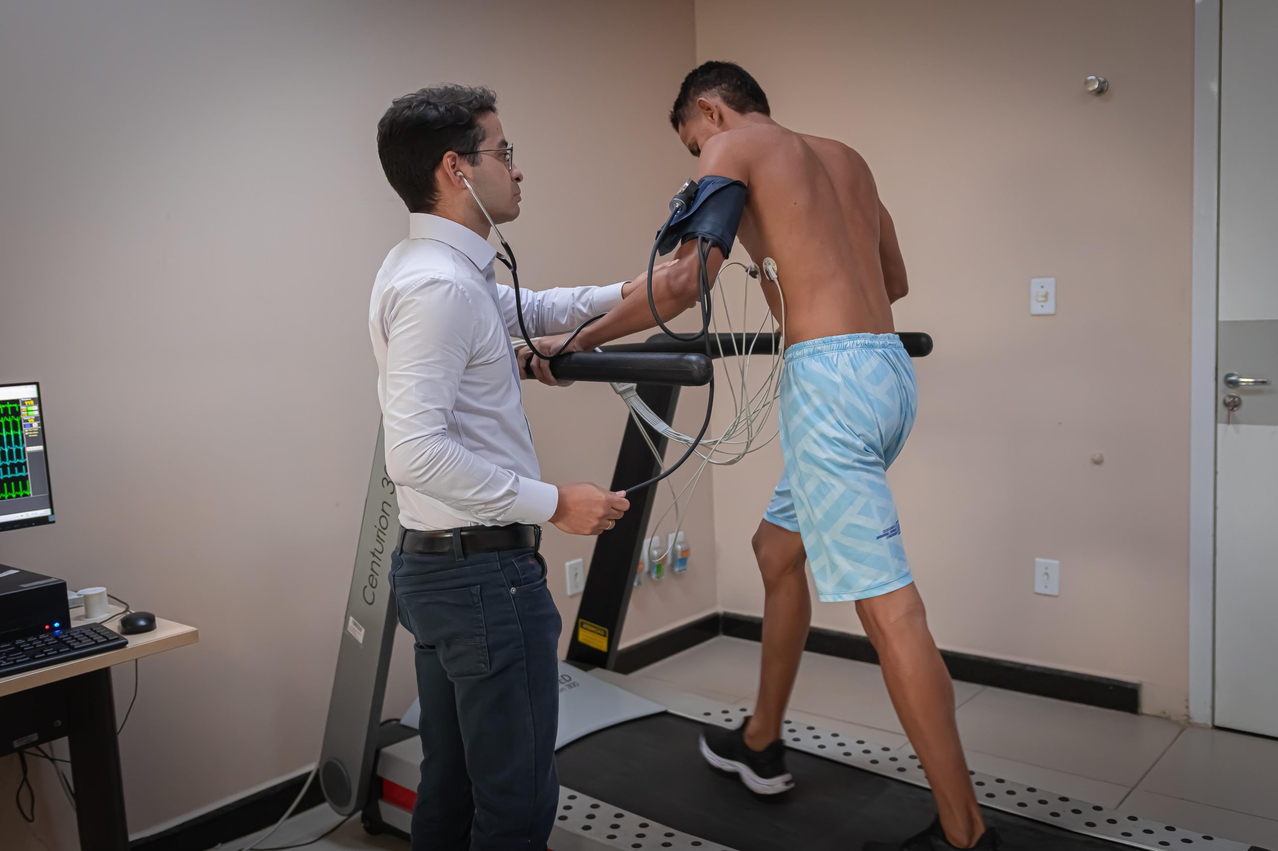 “Realizamos exames como o teste ergométrico, fundamental para avaliar parâmetros como pressão arterial, frequência cardíaca e identificar possíveis sinais de arritmia ou isquemia. Esse cuidado garante que eles possam treinar e competir de forma segura, com acompanhamento médico adequado”, explicou o especialista.