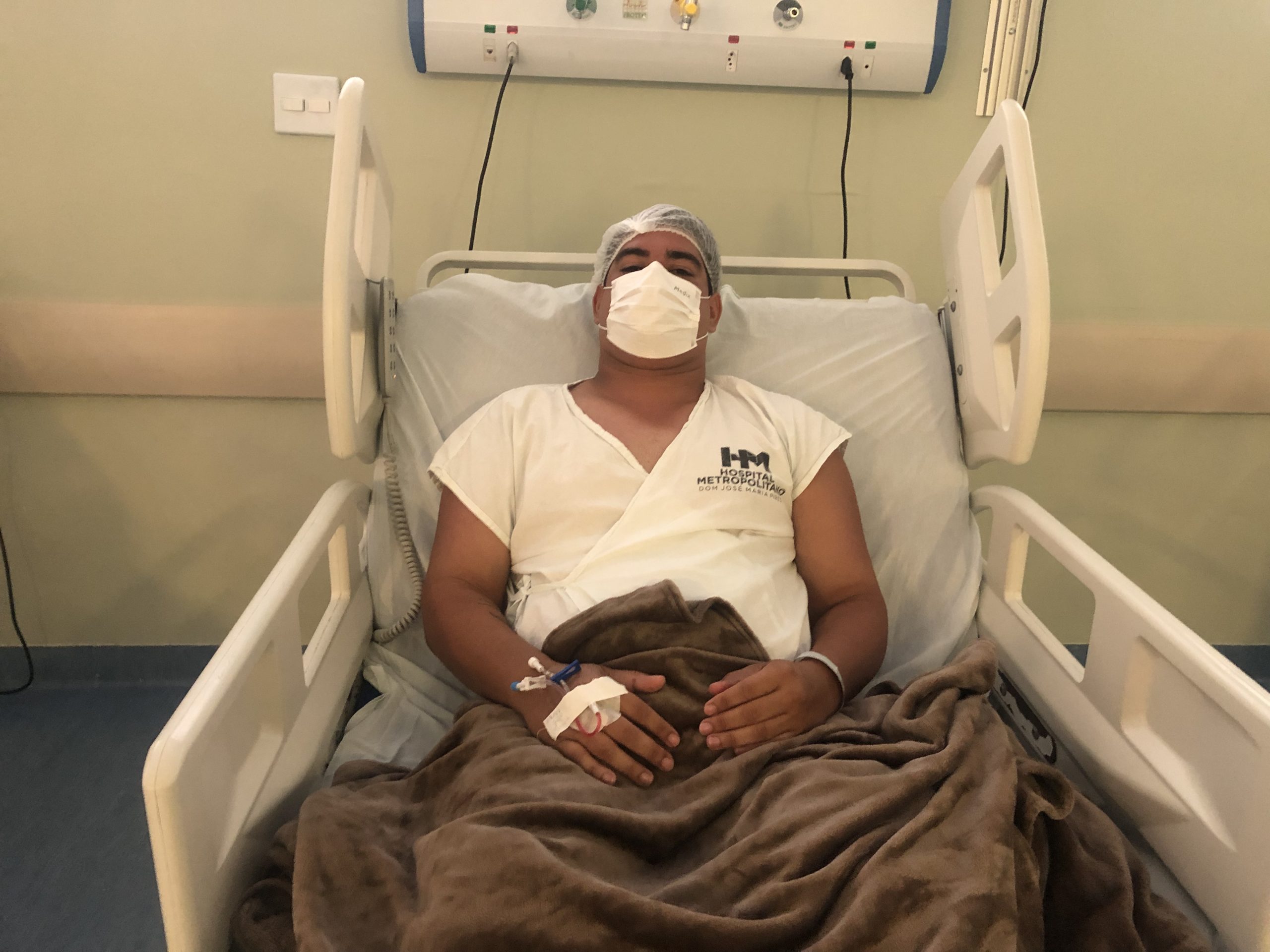 “Eu acordei subitamente com uma dor do lado direito do corpo, da perna até o braço. Tentei pedir ajuda e não conseguia falar, desconfiei logo de AVC. Minha esposa chamou um vizinho, me levaram para a UPA e lá tive duas convulsões. Depois de ser medicado, fizeram um exame e detectaram o tumor, foi então que foi feita a regulação para que eu passasse por um exame de ressonância com contraste aqui no Metropolitano”, contou Ranniere antes da cirurgia.