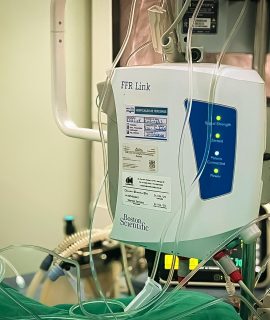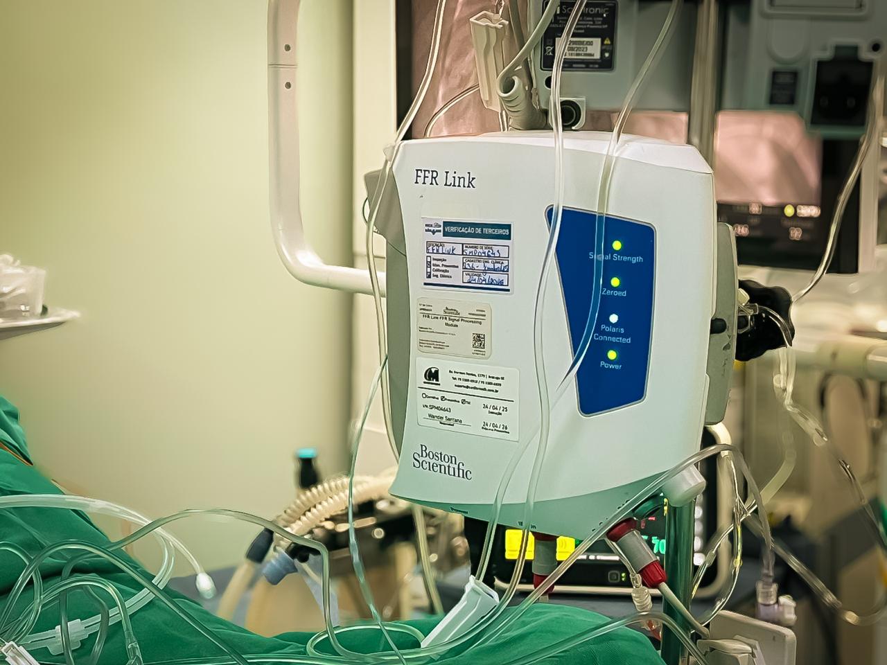 “O FFR foi fundamental para a tomada de decisão. Essa paciente tem uma variação anatômica da coronária. A coronária esquerda dela sai do lado direito e segue por um trajeto que pode ter obstrução. Como ela estava apresentando dor torácica, fizemos o FFR para investigar. Avaliamos o fluxo coronário em condições basais e, depois, sob estímulo com dobutamina, que simula um esforço físico. O resultado foi um teste negativo: o fluxo se manteve normal, sem alteração. Isso significa que, neste momento, ela não precisa de cirurgia cardíaca”, explicou o especialista.