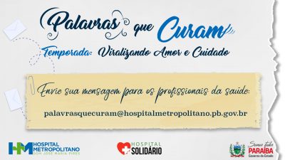 “Desejamos fé, esperança e coragem”. Essas palavras podem soar de maneira clichê, mas para quem está atuando na linha de frente no combate a covid19, sem o contato com a família, certamente fazem a diferença. Com o objetivo de fortalecer os profissionais da saúde, o Projeto ‘Palavras Que Curam’, desenvolvido pelas equipes de Fonoaudiologia e Terapia Ocupacional do Hospital Metropolitano Dom José Maria Pires, em Santa Rita, abriu mais uma temporada. E nesta, utiliza-se do tema: Viralizando o Amor e Cuidado.