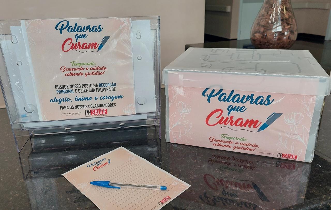 O Hospital Metropolitano Dom José Maria Pires, unidade gerenciada pela Fundação PB SAÚDE, lançou a terceira edição do projeto “Palavras que Curam”, que visa promover uma corrente de bons pensamentos, com envio de mensagens de incentivo aos profissionais da saúde, focadas, principalmente, na gratidão à estes que trabalham com todo cuidado e dedicação para zelar pela saúde de quem mais precisa. Além dos pontos físicos para coleta distribuídos na instituição, às cartas também podem ser destinadas para o e-mail: palavrasquecuramhm@hotmail.com
