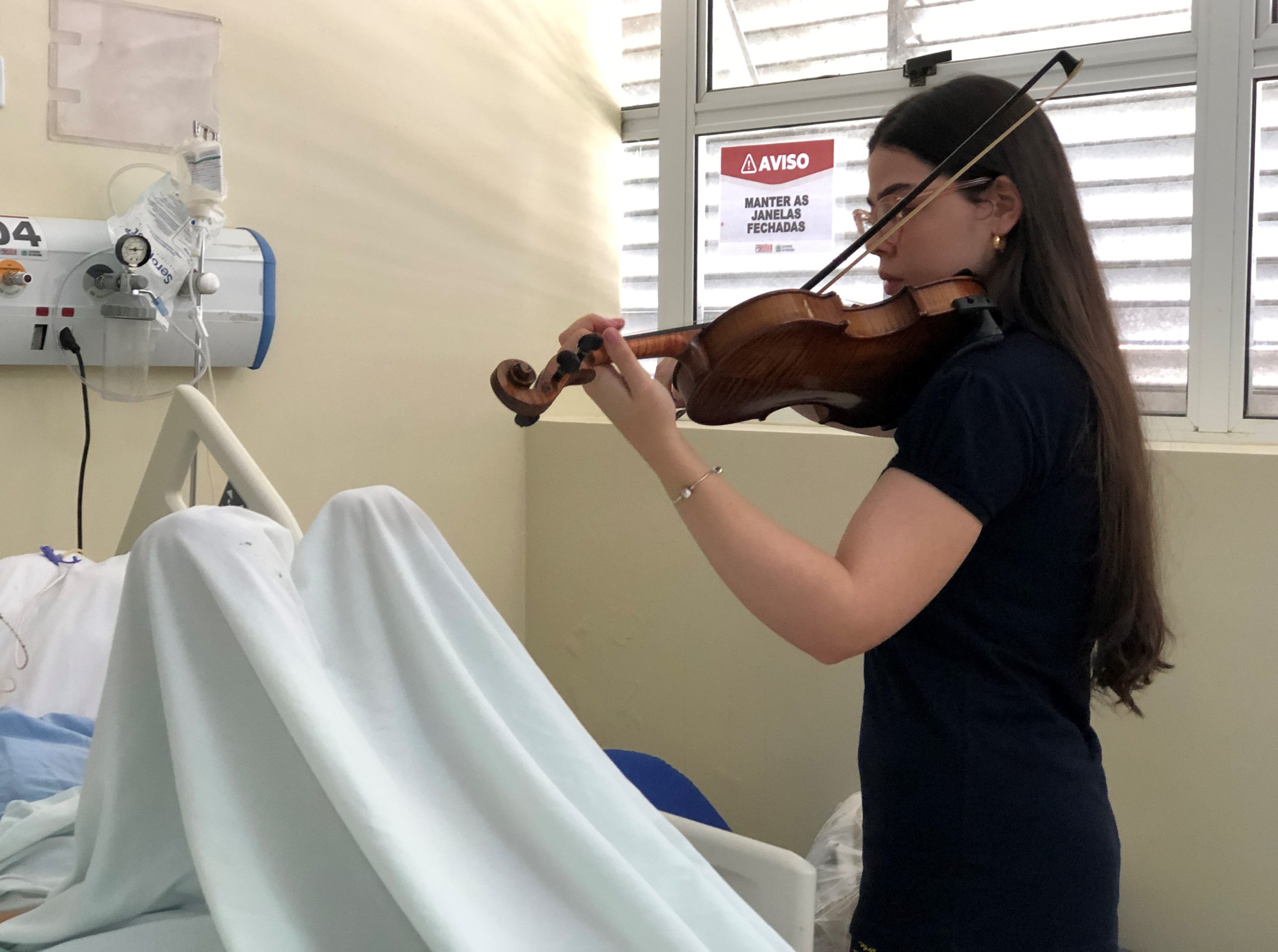 Para levar um pouco mais de conforto à sua avó, a neta da paciente, Elise Heráclito, resolveu transformar este momento numa memória bonita. A música sempre fez parte da história da família. A paciente criou o filho, que é pianista, e acompanhou de perto a trajetória musical da neta, desde a infância, assistindo às apresentações e audições.